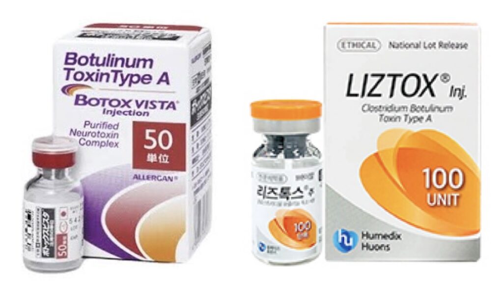 Our clinic offers two types of botulinum toxin products: BOTOX VISTA(R) by Allergan Japan -- the only botulinum toxin approved by Japan's Ministry of Health, Labour and Welfare -- and LIZTOX, which is approved by the Korean Food and Drug Administration (KFDA) with a proven safety record in South Korea.