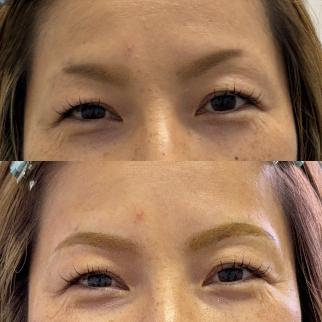 完成!B-BROW实现如同真实毛发生长般的自然效果。虽然效果因人而异,但颜色保持稳定不变色,可以持续约5-10年。